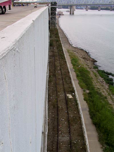 An abandoned rail line, interrupted by those stairs the three of us took to get up to the stadium.