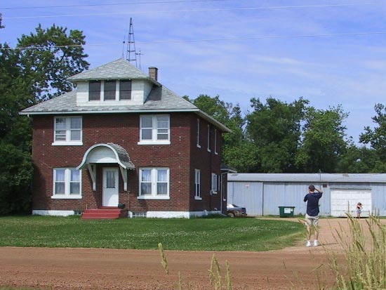 Two years ago it was Tiger Stadium in Detroit. Last year it was County Stadium in Milwaukee. This year it was back to Milwaukee, to see the new home of the Milwaukee Brewers. We start 175 miles into the trip, as Jason and I stop in Loyal, Wisconsin to pick up old college friends Tink and Penny. Jason is taking a photo of their house, Penny can be seen walking from the shed after putting away their riding lawnmower.